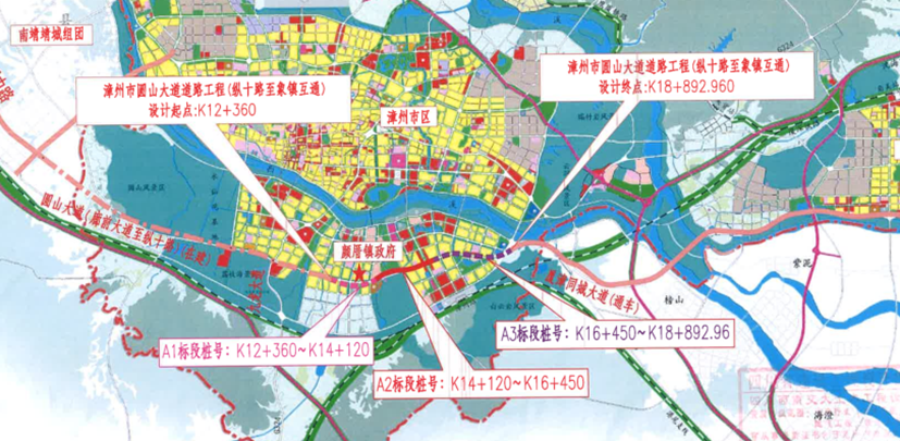 漳州市圓山大道道路工程 (縱十路至象鎮互通)起點位于縱十路,終點與廈漳同城大道象鎮互通順接,路線全長6.533公里,項目總投資約25.16億元,工程建安費約13.92億元,按城市主干道及一級公路標準設計,道路紅線寬70米(含綠化帶),設計標準為:主車道60公里/小時,雙向八車道;輔道30公里/小時,雙向四車道。項目建成后,對完善我省普通國省干線公路網布局,構建廈漳兩市快速通道,疏解漳州高新區過境交通壓力,帶動漳州高新區開發,增強國防交通保障能力等具有重要意義。