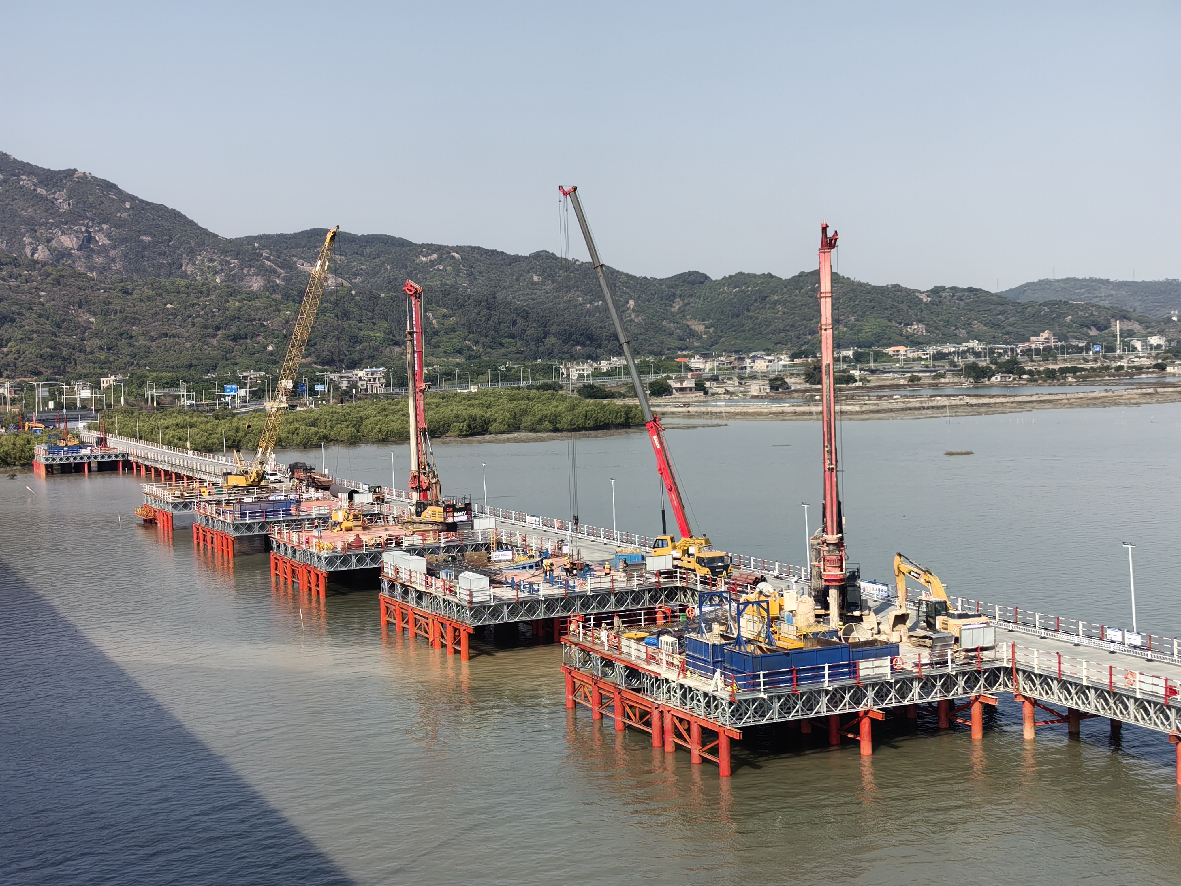 在各方的共同努力下,漳汕高鐵(福建段)3標全線已累計完成樁基975根,承臺88個,墩身71個,海上鋼棧橋完成3168米,隧道正在進行進洞施工前的準備工作。
