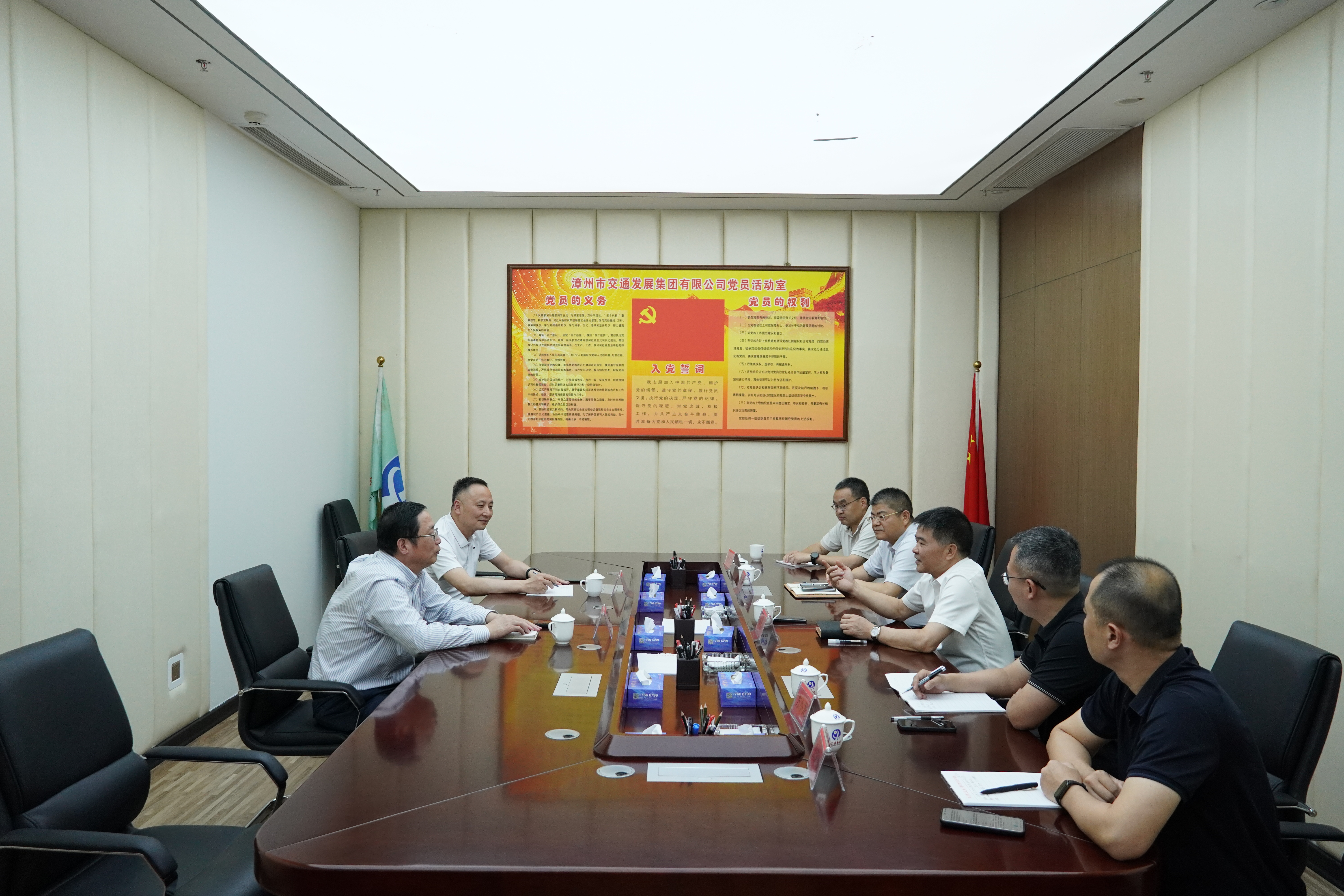 5月21日,央企控股的知名化工品倉儲物流企業江陰恒陽物流集團董事長顧文龍、財務總監吳和忠到漳州交通集團走訪交流。漳州交通集團總經理林長河、副總經理陳連升及通裕資產管理有限公司、漳浦一德石化有關人員參加了交流活動。