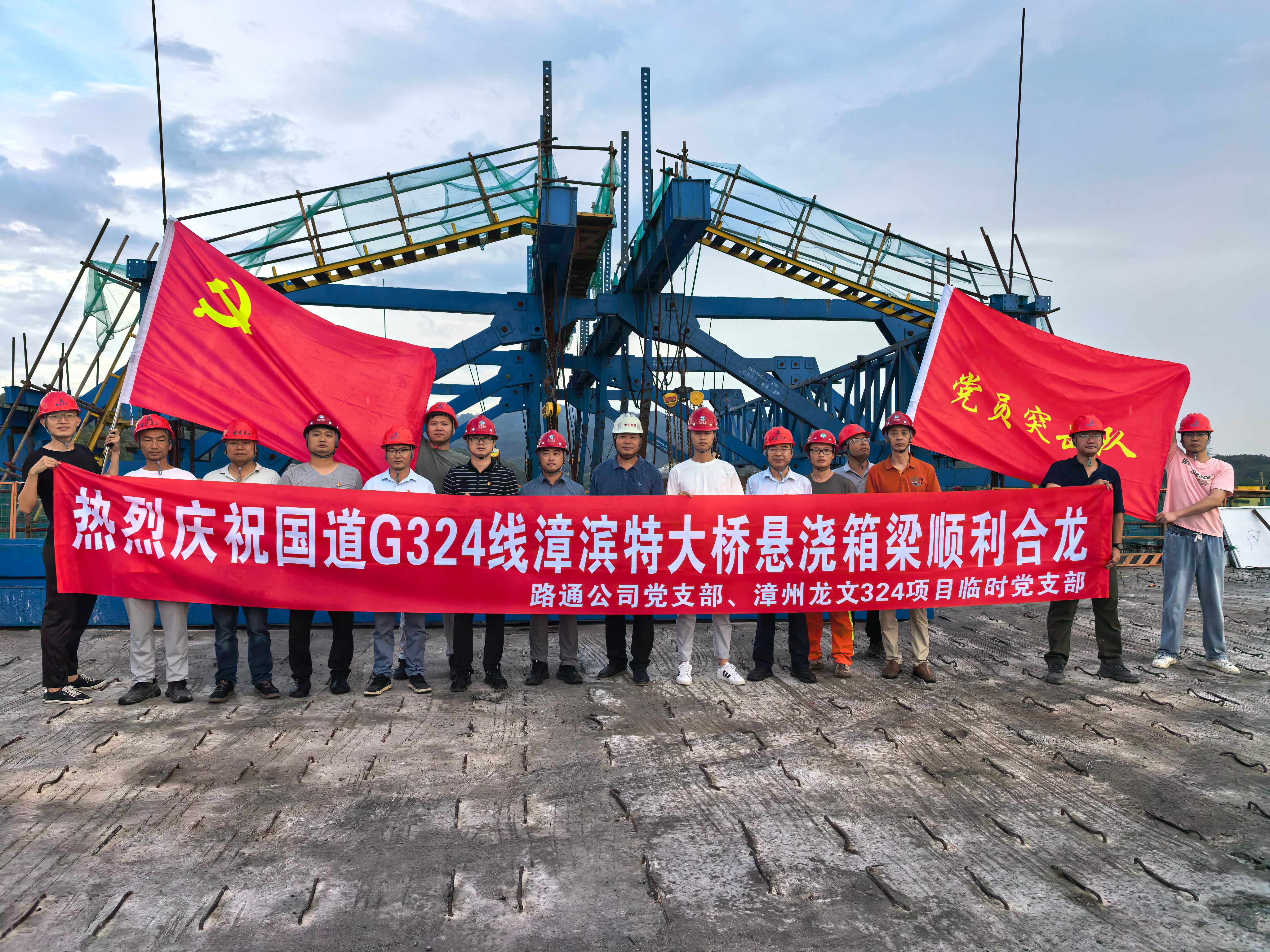 6月13日,國道G324線龍海角美大碑頭至龍文朝陽漳濱段公路工程(龍文段)漳濱特大橋左幅懸澆箱梁順利合龍。