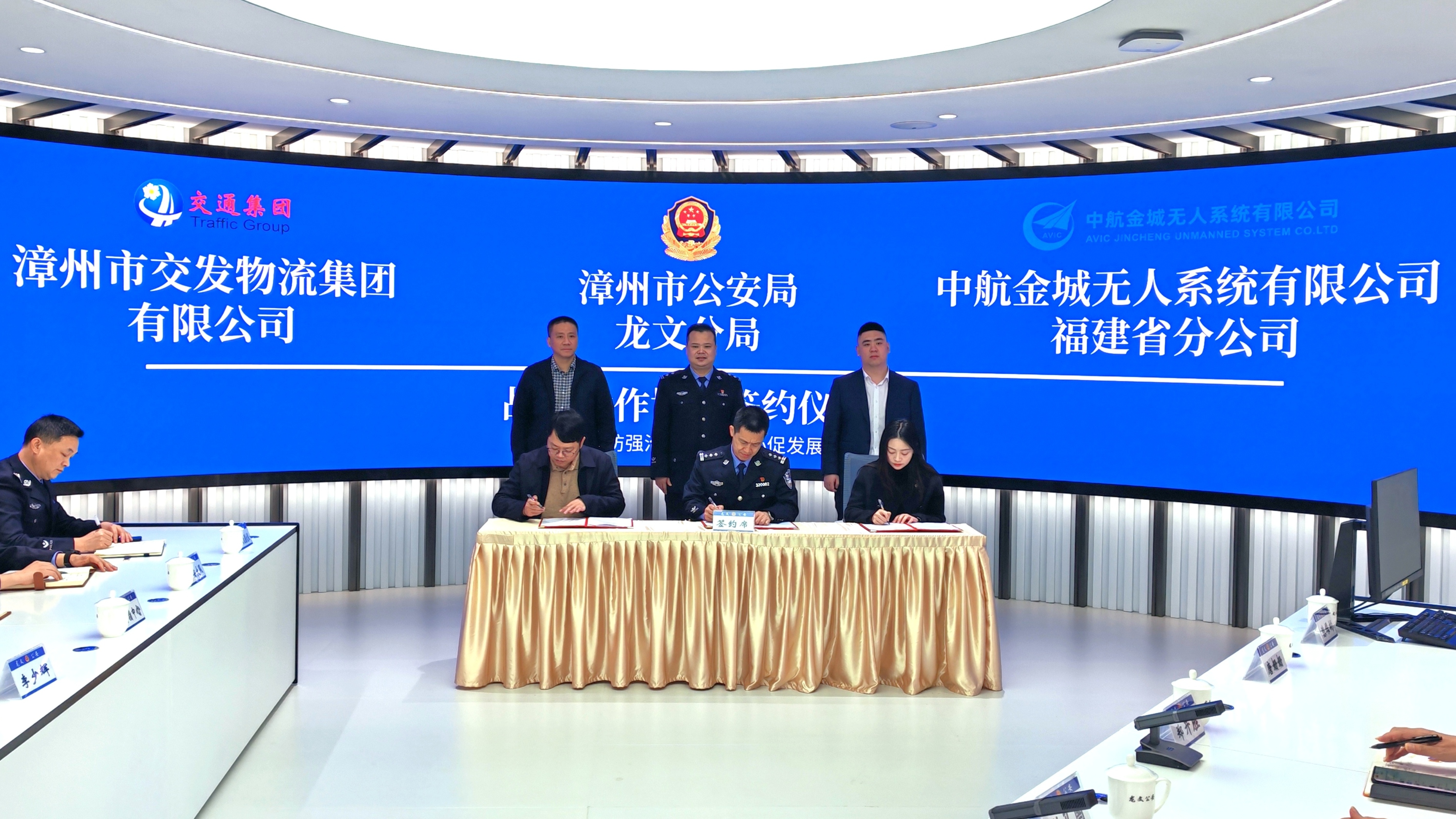 交發物流集團黨總支書記、董事長劉向東,中航金城無人系統有限公司福建省分公司總經理助理何沛霖,漳州市公安局龍文分局局長陳阿偉等出席儀式。